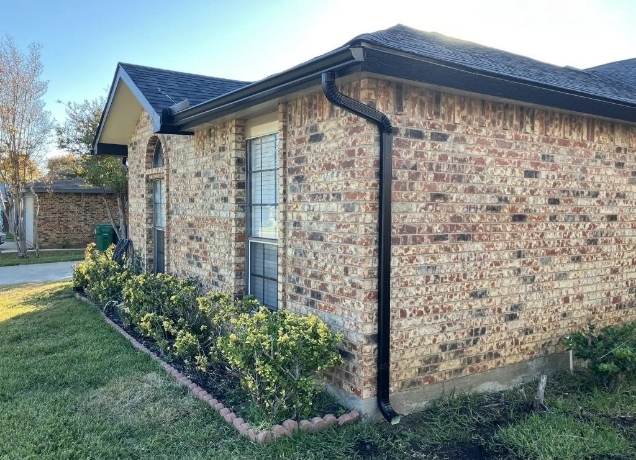 North Texas sits on black gumbo clay that expands dramatically when saturated and contracts when dry. Water pooling around your foundation causes the soil to swell, and that movement is one of the leading causes of foundation cracks, brick separation, and interior drywall damage in DFW homes. Properly directed downspouts keep water 4–6 feet away from the slab, which pays for the entire gutter system in avoided foundation repair.
